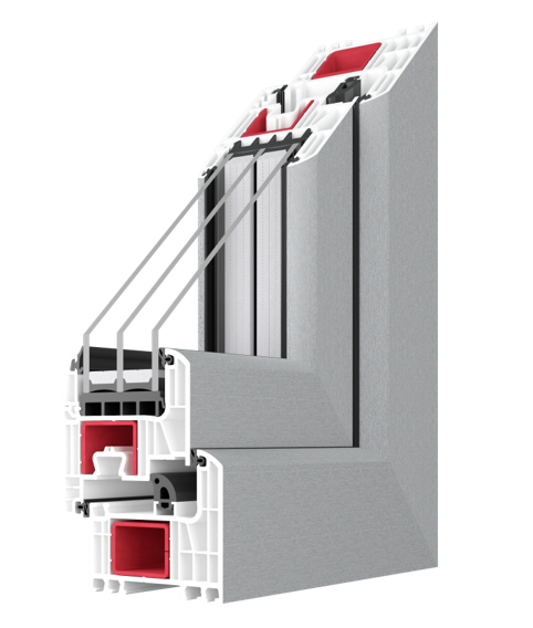 Unikalny design z możliwością wyboru kanciastej listwy przyszybowej wpisującej się w najnowsze trendy architektoniczne. Za rewelacyjne parametry izolacji cieplnej odpowiada optymalna 7-komorowa budowa profilu, specjalnie zaprojektowany system uszczelnienia ze spienionego EPDM oraz pakiety szybowe o wysokich parametrach izolacji termicznej. Wyposażenie standardowe: