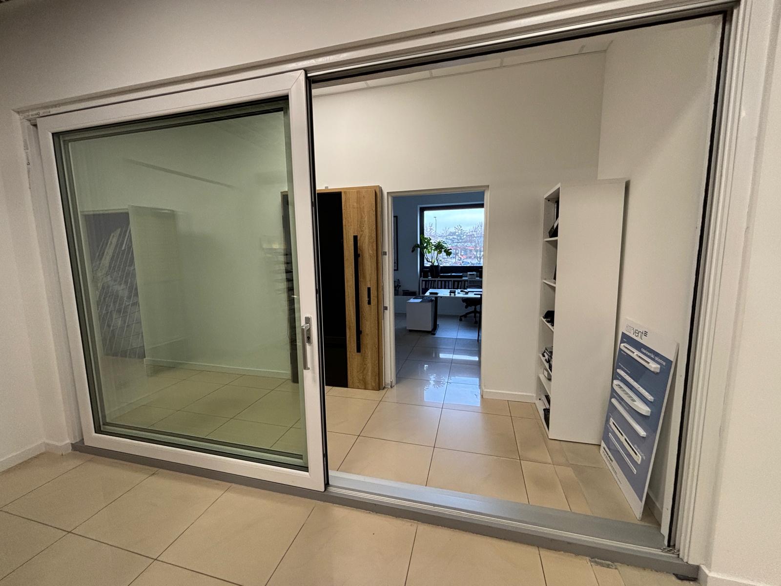 - klamka aluminiowa wewnątrz, pochwyt wpuszczany od zewnątrz