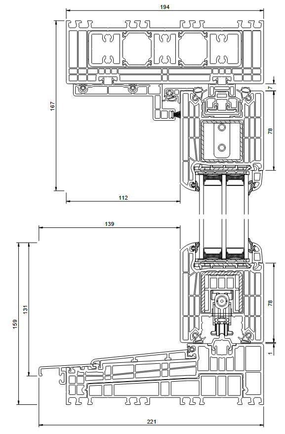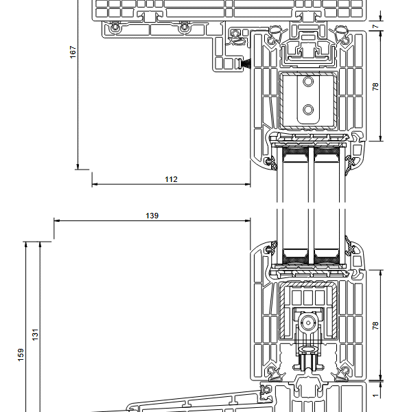 - wzmocnienie ościeżnicy wykonane z wysokiej jakości kształtowników aluminiowych z przekładkami termicznymi, wzmocnienie skrzydła: górne i pionowe – pełne (zamknięte) stalowe o grubości 2 mm, dolne – stalowe w kształcie „ceownika” o grubości 3 mm